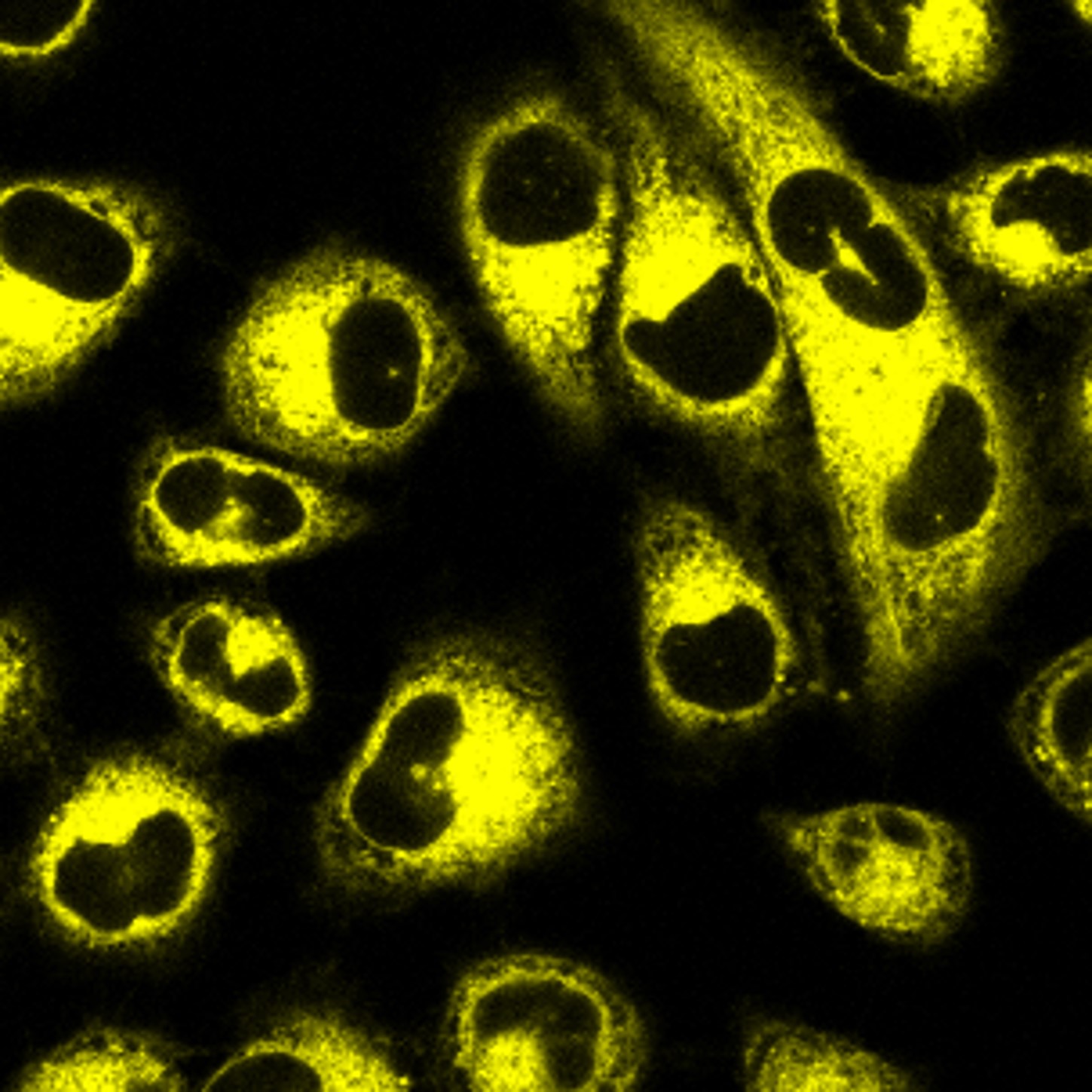 AIE-ER-Y01是一款专为内质网设计的荧光探针,它凭借独特的识别位点实现高特异性内质网靶向与检测。该探针细胞相容性好,低毒性,适用于活细胞内质网的荧光染色。其较大的斯托克斯位移显著减少成像中的串色现象,保证了成像的清晰度。此外,AIE-ER-Y01在多次扫描下仍能保持稳定的荧光信号输出,为长时间或多次成像实验提供了可靠保障。这款探针的出色性能使其成为研究内质网结构和功能变化的重要工具。