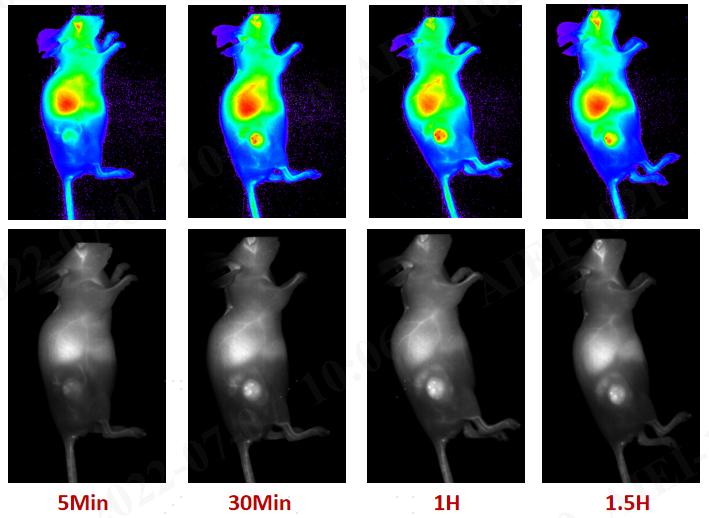 【产品优势】1. 单分散性良好,粒径均一稳定,粒径均一性CV<10%。2. 对细胞及组织毒性低,具有较短的药代动力学曲线。3. 斯托克斯位移可高达290nm,可使吸收和发射光谱之间的重叠少,避免能量转移而导致的荧光效率降低。4. 聚集诱导发光(AIE)产品,浓度越高,荧光越强,适用于高浓度荧光成像场景(输尿管肠梗阻成像等)。5. 光稳定性好:连续多次体内荧光成像,荧光持久稳定。